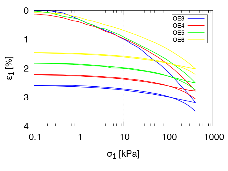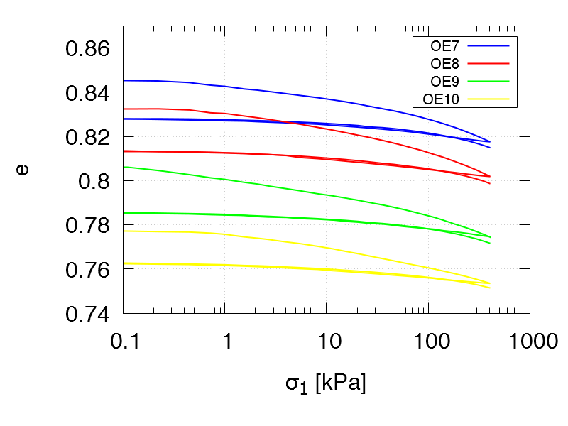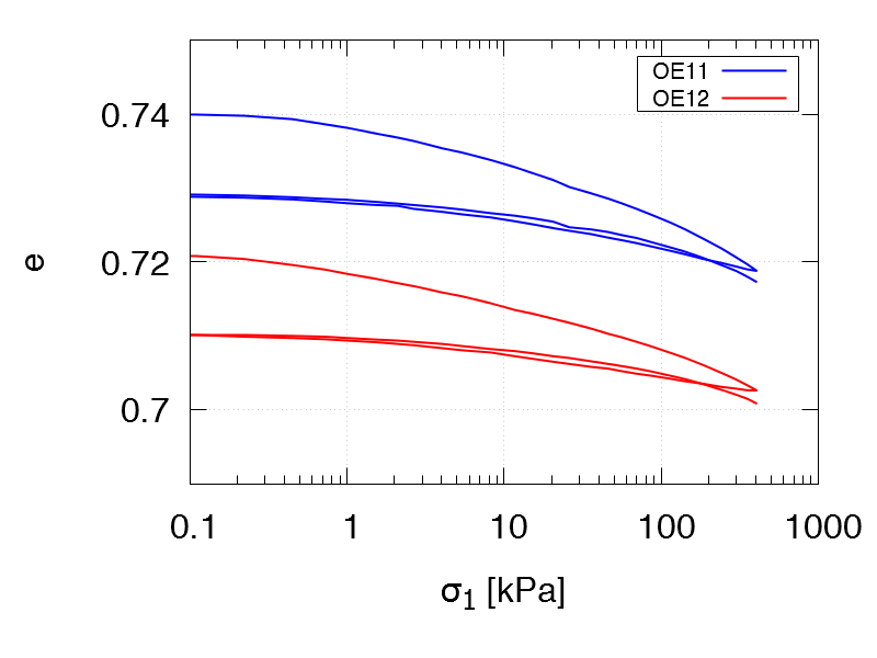 Oedometric compression tests with un- and reloading:
