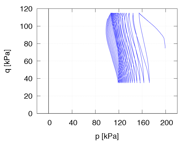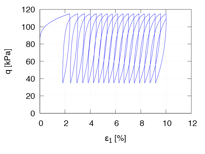 | Test C34 e0 = 1.283 qampl = 25 kPa Test data |