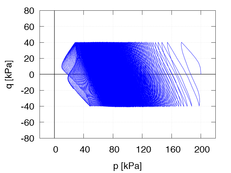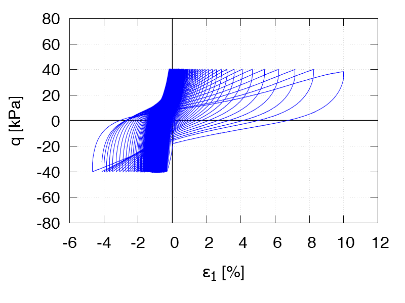 | Test C2 p0 = 200 kPa e0 = 1.147 qampl = 40 kPa Test data |