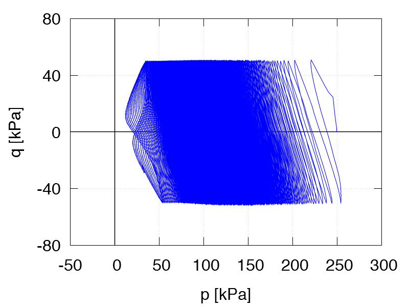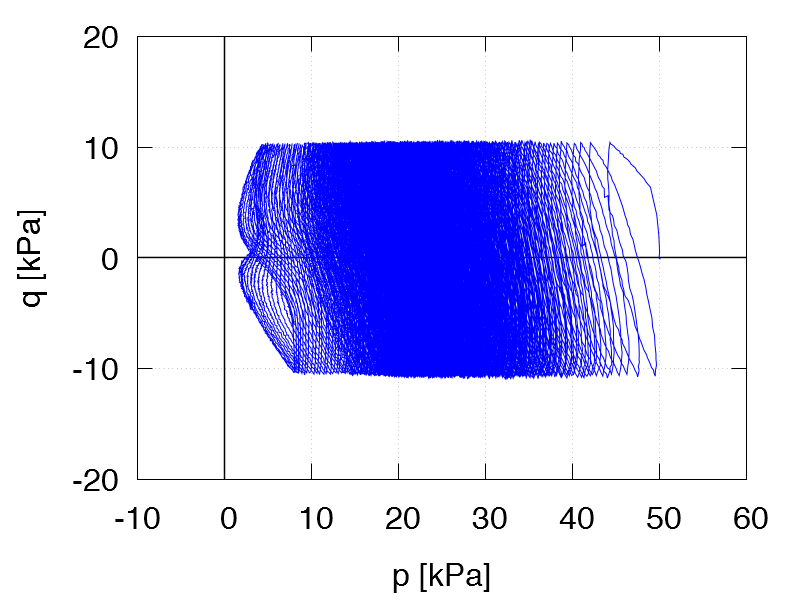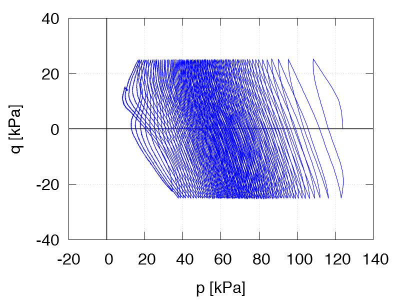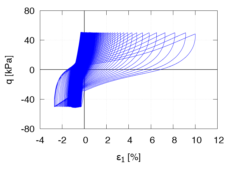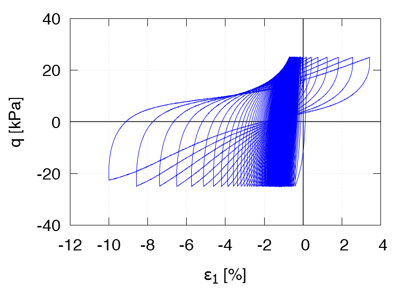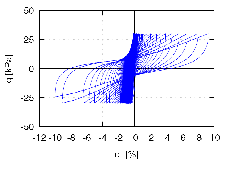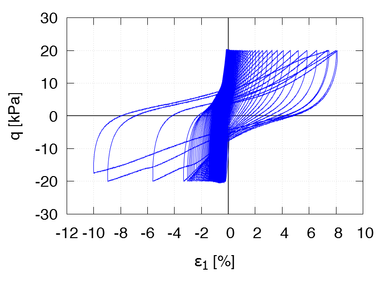 | Test C21 p0 = 250 kPa e0 = 1.112 qampl = 50 kPa Test data |