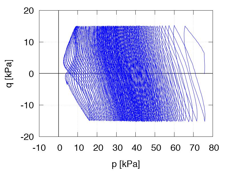 | Test C17 p0 = 75 kPa e0 = 1.410 qampl = 15 kPa Test data |
