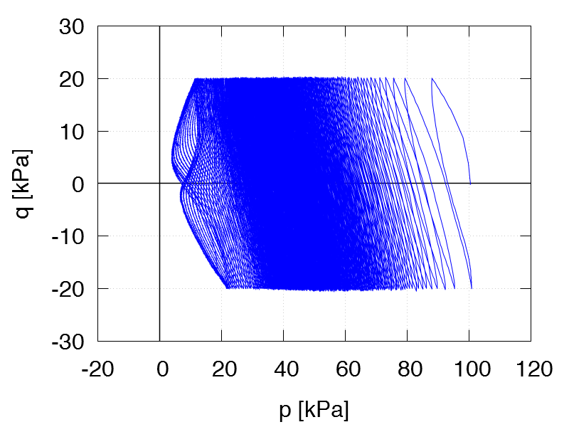 | Test C20 p0 = 150 kPa e0 = 1.272 qampl = 30 kPa Test data |